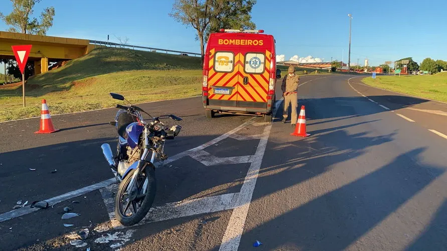 Um motociclista de 39 anos ficou ferido após se envolver em um acidente com um carro, no final da tarde desta sexta-feira (19). A colisão aconteceu na BR-369, em Apucarana, próximo ao "Bonezão".