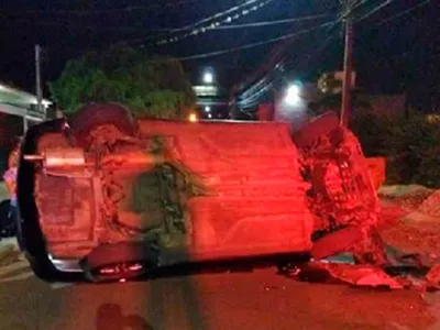 Moradores da Rua Clevelândia, em Apucarana, tomaram um susto por volta das 21h deste sábado, 25, quando um Honda Civic se chocou contra uma caçamba e capotou.