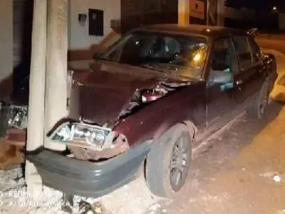 embriagado, bateu com seu carro, um Monza, em um poste na rua Maria Zaffalao