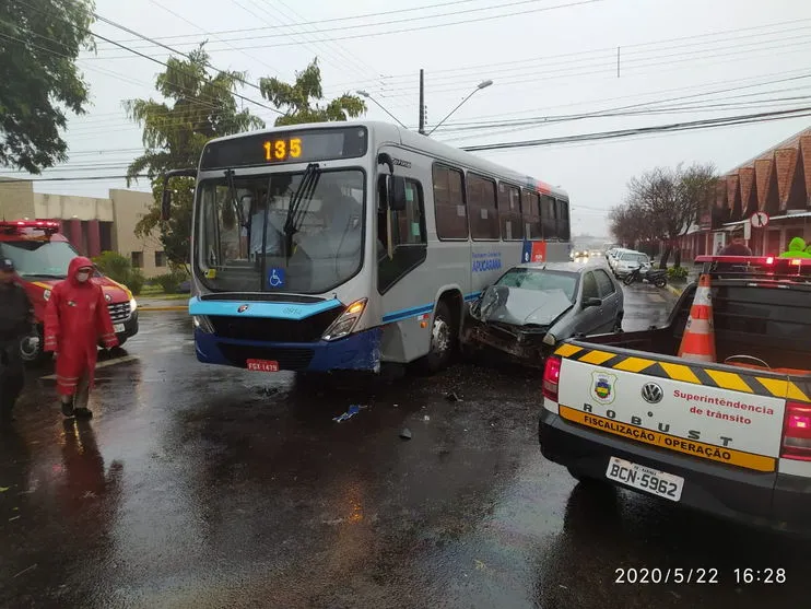 Ocorreu na tarde desta sexta (22) um acidente entre um carro e um ônibus na Rua Rio Grande do Sul, com a Rua Carlos Schmidt, em Apucarana. O condutor do veículo foi encaminhado para o Hospital da Providência, de acordo com agentes de trânsito. Já o ônibus, segundo agentes de trânsito, estava vazio e o motorista não se feriu.