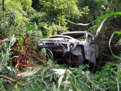 Motorista perde o controle da direção, atinge árvore e vai parar em barranco