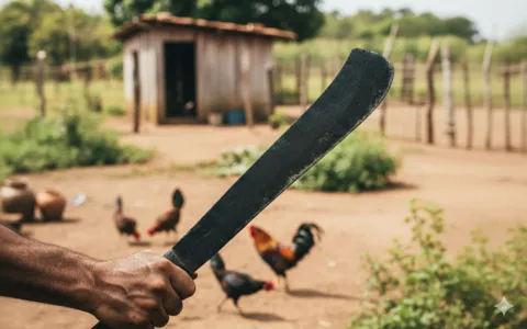 A mulher relatou que seu neto utilizou um facão para intimidá-la após ser questionado sobre o cuidado com aves na propriedade.