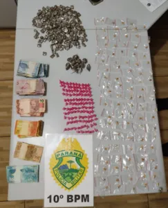 De acordo com a polícia, todas as porções estavam fracionadas prontas para venda. Dentro de uma bolsa feminina, a equipe localizou R$ 179 em notas trocadas e posteriormente, R$ 182. A PM deu voz de prisão às mulher, além das drogas e do dinheiro terem sido apreendidos. Ela foram conduzidas para a delegacia de Marilândia do Sul.