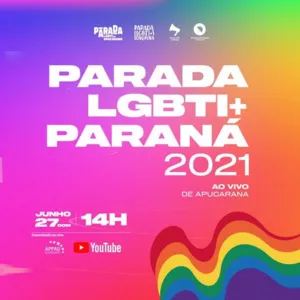 A Parada LGBTI+ Paraná será realizada na tarde deste domingo (27) em Apucarana, de forma on-line. Serão quatro horas de live, das 14h às 18h, com músicas, atrações e bate- papo sobre assuntos importantes, como exemplo, direitos humanos, emprego, HIV, entre outros.