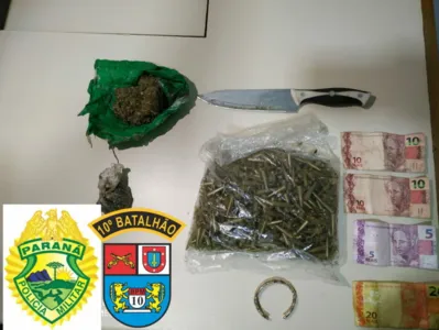 Nesta quinta-feira (04) a noite, a Polícia MIlitar (PM), prendeu um homem e apreendeu duas porções de maconha que pesaram 79 gramas, além de um saco contendo diversos pinos que podem ser utilizados para acondicionar entorpecentes.