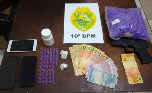 A Polícia Militar (PM) de Apucarana apreendeu pinos com cocaína e um simulacro de pistola no Jardim Alvorada em Apucarana na noite de quarta-feira (10). Três pessoas foram detidas.