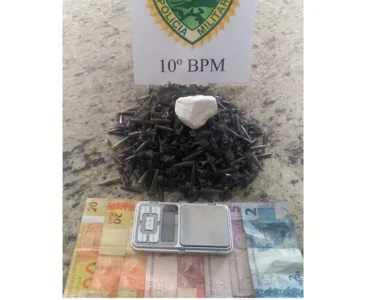 Os dois foram abordados. Dentro da bolsa a PM encontrou 50 gramas de cocaína. Toda a droga renderia aproximadamente 300 porções para a venda. Pinos vazios também foram localizados.