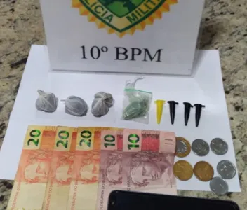 Os policiais apreenderam três porções de maconha, quatro pinos com cocaína além de dinheiro trocado, que seria da venda de drogas. Os dois foram levados para a delegacia.