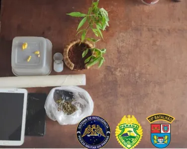 De acordo com a PM, pedras de crack foram encontradas no armário da cozinha, e em um dos quartos, os policiais localizaram dois pés de maconha, além de seis gramas do entorpecente.