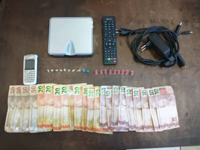 Os policiais encontraram nove pinos com cocaína e 10 pedras de crack, já preparadas e prontas para a venda. Foi localizado também uma certa quantia em dinheiro e um aparelho cine box.
