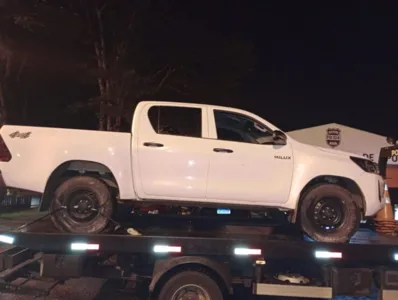 Os policiais checaram a placa do veículo no sistema, mas nenhum alerta de furto/roubo constava. No entanto, foi encontrado um boletim de ocorrência pelo crime de roubo quando o chassi da caminhonete foi checado.