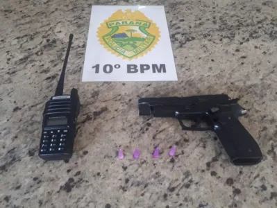 A Polícia Militar (PM) de Apucarana recuperou uma moto furtada, encontrou um simulacro, uma arma falsa e ainda apreendeu um rádio comunicador, na tarde desta sexta-feira (24).