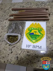 Um homem foi visto pulando o muro do Detran, que faz divisa com o local, na Rua Nova Ucrânia. Com a chegada da PM, o homem já havia fugido, mas durante as buscas, em meio a cerca elétrica do presídio, foi localizado um cano tipo pvc onde em seu interior havia maconha, que após ser retirada aferiu a quantia de 355 gramas.