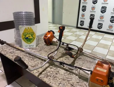 deixadas em sua casa. Os policiais apreenderam as roçadeiras e também um rolo