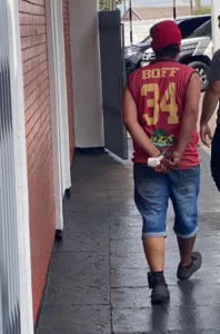 A PM informou que contra o homem havia um mandado de prisão pelo crime de tráfico. A polícia ainda disse que aparentemente ele teria feito o uso de bebidas alcoólicas e drogas, estava alterado e rindo de toda a situação.