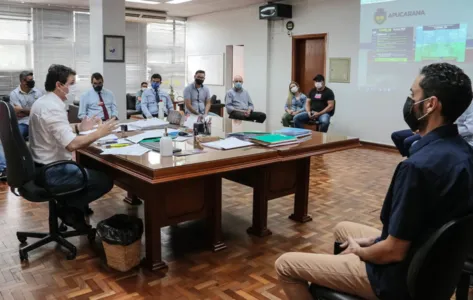 Proprietários e gerentes dos principais mercados e supermercados de Apucarana estiveram reunidos com o prefeito Júnior da Femac nesta terça-feira (09/03). O encontro, que aconteceu no gabinete municipal, contou com a presença do vice-presidente da Autarquia Municipal de Saúde (AMS), Emídio Bachiega, da secretária Municipal da Fazenda, chefe da fiscalização municipal, e do comandante da Guarda Civil Municipal (GCM), Alessandro Carletti.