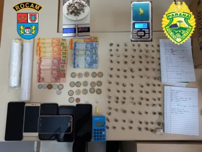 A equipe Rocam da Polícia Militar (PM) de Apucarana apreendeu mais de 100 porções de maconha, crack e cocaína; cinco pessoas foram levadas para delegacia