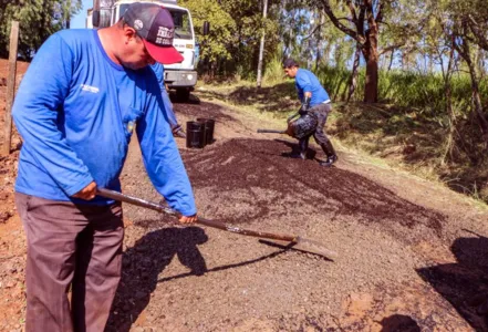 Já no prolongamento da via - na Rua Benjamin Bossa, onde ficam as chácaras do loteamento – a melhoria envolveu a operação tapa-buraco. “No ano passado, colocamos resíduo de asfalto neste trecho. Agora, corrigimos os buracos que surgiram, com a colocação de brita graduada e emulsão asfáltica”, detalha Toshio.