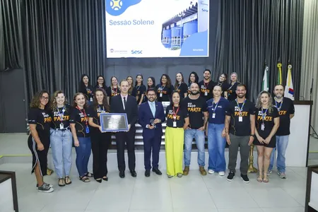 A Câmara Municipal de Apucarana prestou homenagem ao Sesc Apucarana, com a entrega do Diploma de Méritos em Tarefas Comunitárias, de autoria do vereador Moisés Tavares (PP). A sessão solene aconteceu nesta terça-feira (2) e foi presidida pela vereadora Eliana Rocha (Solidariedade).