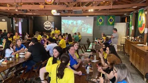 Para algumas pessoas 'sextou' mais cedo. Os bares e lanchonetes do município recebem grande público. "Brasil vai vencer de 2x0", é o palpite de Rafael de Oliveira, que vê a partida ao lado de amigos.