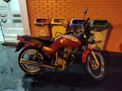 Do lado de fora da casa, os policiais localizaram uma motocicleta Honda/CG Titan vermelha, com alerta de furto e com as mesmas características da utilizada no roubo citado.