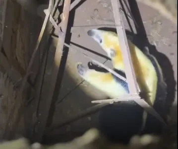 Ao chegar ao local, a equipe encontrou o tamanduá acuado dentro de uma estrutura metálica encostada em um muro. Com o uso de equipamentos adequados, o animal foi retirado com segurança e colocado em uma caixa de transporte.