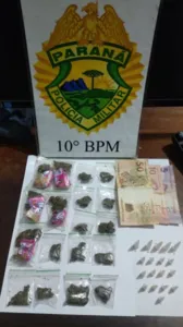 Em busca pessoal, os policiais encontraram com o homem diversos pinos de cocaína, totalizando 7 gramas, uma quantia em dinheiro. Em uma revista pelo cômodo onde ele estava no momento da abordagem, os policiais encontraram uma sacola com 18 pacotes de maconha, prontos para comercialização. Em cada pacote, além da droga, havia um chiclete, brinde dado aos usuários. A maconha pesou 73 gramas.