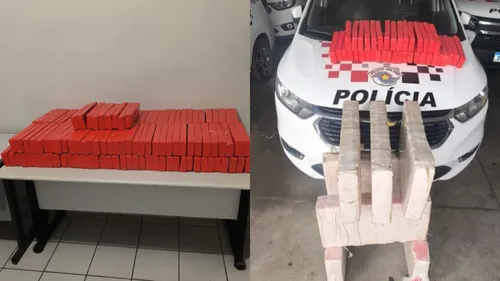 Dentro da caminhonete, a PM encontrou três tabletes de maconha. O condutor revelou que descartou o restante da droga em uma área de mata, onde outro veículo iria buscar o entorpecente. A corporação encontrou mais 150 tijolos de maconha no local, que pesaram, no total, 148 kg. Dois homens chegaram em um Chevrolet Onix para buscar a droga no local indicado e foram presos.