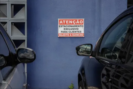 Empresas têm transformado recuos e acessos públicos em vagas privativas, instalando placas de exclusividade e barreiras irregulares