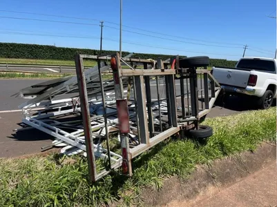 Três pessoas estavam na caminhonete no momento do incidente, mas ninguém ficou ferido. O engate do reboque ficou completamente retorcido com o impacto. No compartimento, era transportada a estrutura de um banner.