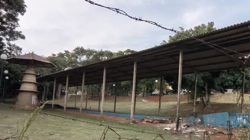 Cancha de malha que existe no Parque Biguaçu se tornou ponto fixo dos moradores de rua, que espalham lixo e fazem incêndios no local
