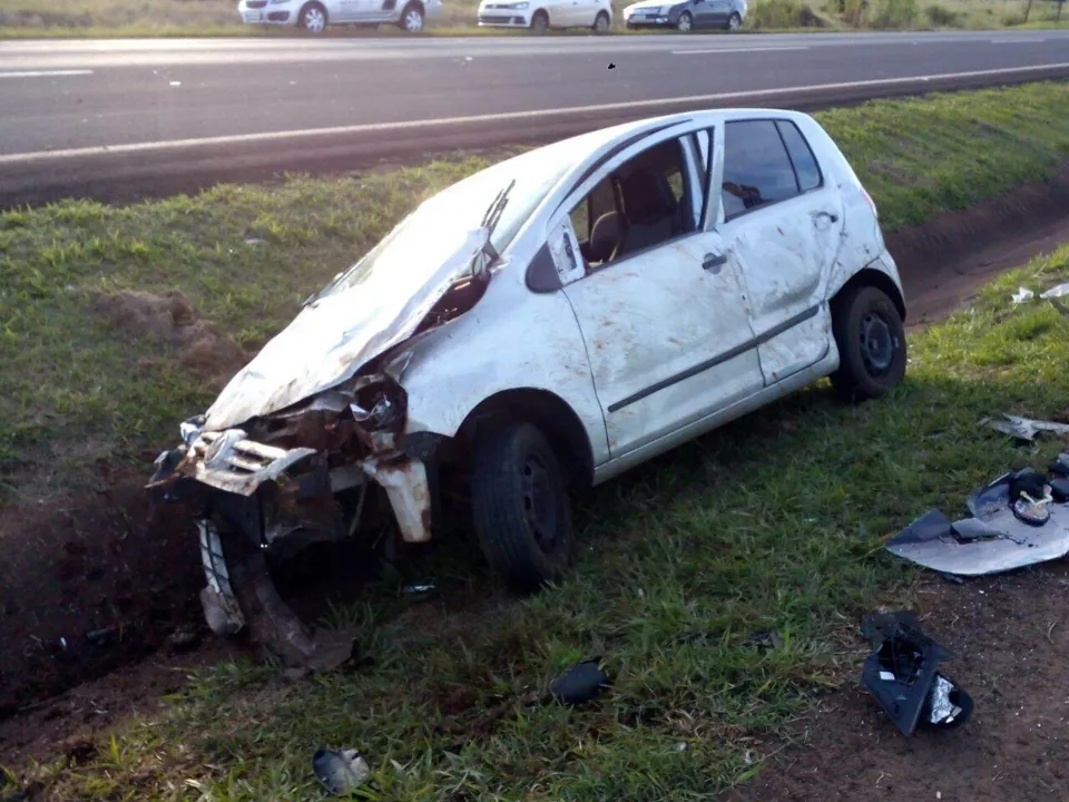 De acordo com socorristas do Samu, uma mulher dirigia um VW Fox e perdeu o controle da direção. A vítima sofreu um corte na cabeça e foi encaminhada ao Hospital Regional João de Freitas, em Arapongas.