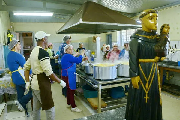 “Começamos a trabalhar no final de abril”, revela a coordenadora da cozinha Maria Rosa Vendrametto, que é voluntária há quase vinte anos junto com o marido Miguel Vendrametto. Para ela, Santo Antônio, apesar de ser conhecido como casamenteiro, é o protetor dos pobres. “Conta a história que ele doou um enxoval para uma noiva humilde, por isso, ficou conhecido como casamenteiro”, explica.