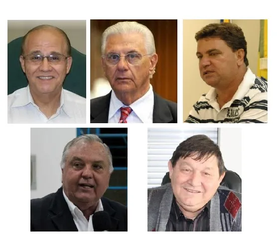 Os nomes são Pe. Beffa, prefeito atual. Dr. Valdecir, vereador em exercício. Sérgio Onofre, ex-vereador de Arapongas. José Bisca, ex-prefeito da cidade. E Waldir Pugliesi, também ex-prefeito.