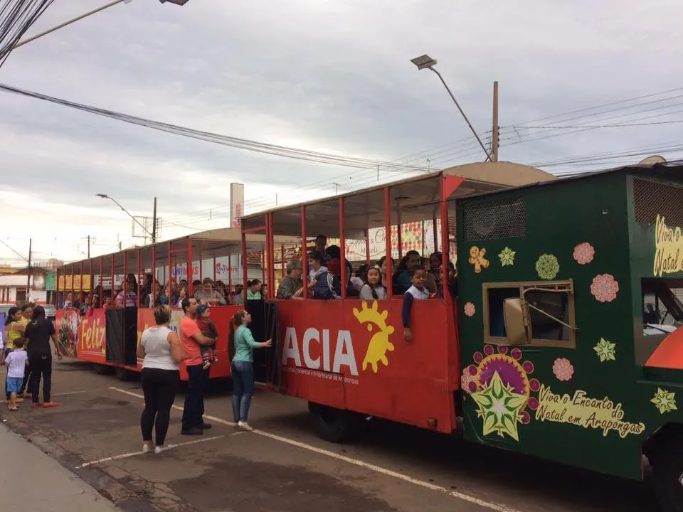 O trenzinho da Acia é marca registrada na época do natal e neste ano não podia ficar de fora. A locomotiva reúne a família araponguense que leva as crianças para passear pela cidade. O trenzinho opera até a sexta-feira (23) a partir das 19h, até às 21h30.