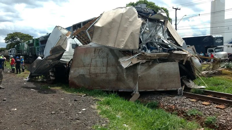 Trem arrasta caminhão por cerca de 500 metros em Arapongas