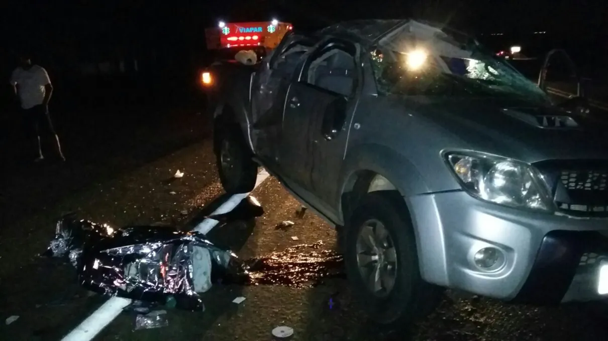 A Toyota Hilux se envolveu em colisão com utilitário VW Saveiro, com placas de Apucarana.