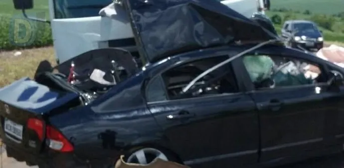 Dois rapazes morreram em grave acidente de trânsito envolvendo um caminhão e um carro, registrado no início da tarde deste domingo (22) na PR-323, em trecho entre Jussara e Cianorte.