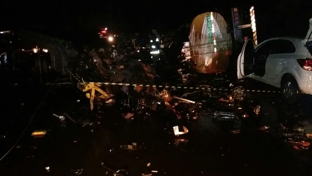 O acidente envolveu uma carreta carregada com subproduto de soja e um caminhão carregado de material de ferro-velho, ambos com placas de Ponta Grosa PR. Segundo informações colhidas no local do acidente, o tanque carregado com melaço de soja desprendeu da carreta.