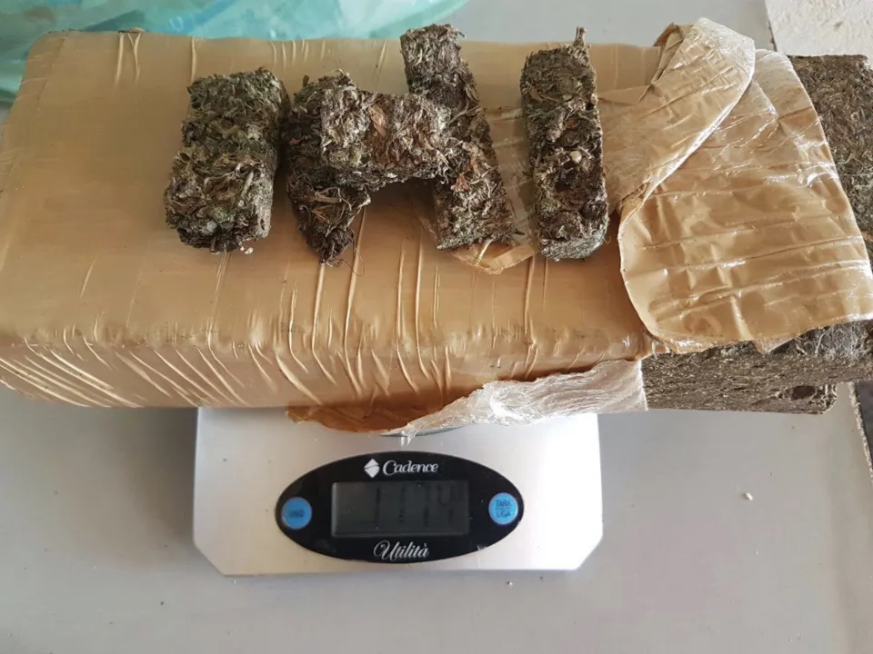 Durante revista pessoal os guardas encontraram uma sacola com um tablete grande de maconha e outros pedaços fracionados.