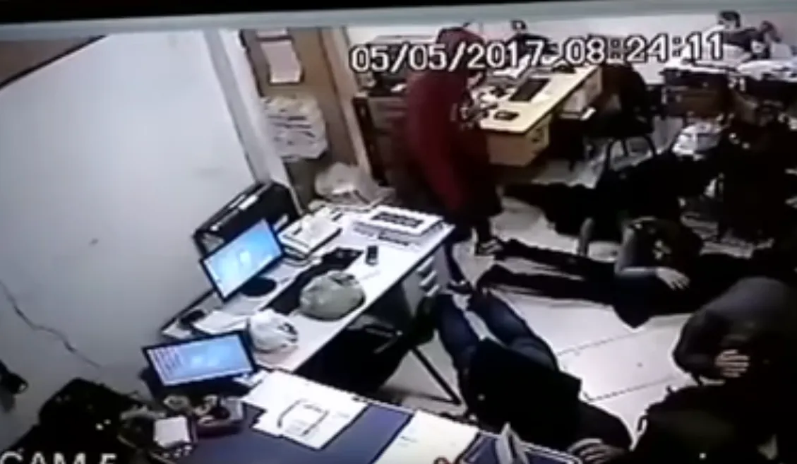 Imagens mostram os bandidos armados invadindo o escritório da Embalar, por volta das 8 horas. Dois entram no imóvel, enquanto um terceiro dá cobertura do lado de fora. A dupla obrigou os reféns a deitarem no chão e entregarem seus pertences. Foram levados celulares, carteiras com documentos e dinheiros e duas motos, uma Honda CG 125, de cor preta e placa ARQ 9764 e uma Honda CG 150, de cor azul e placa AOV 0326.