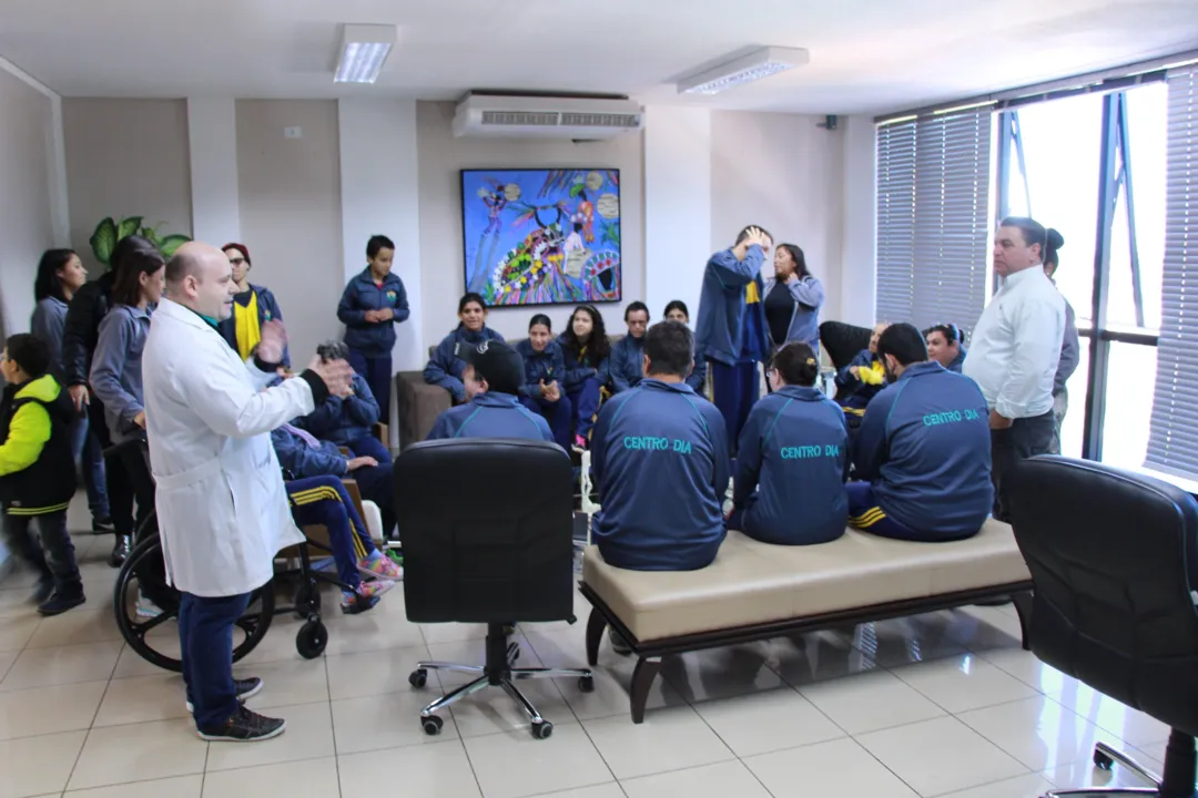 Na manhã de ontem (21), o prefeito de Arapongas, Sergio Onofre, recebeu a visita de uma comitiva formada por alunos que integram o projeto “Centro Dia”, desenvolvido há cerca de 3 anos pela APAE de Arapongas.Eles estiveram acompanhados de uma equipe multidisciplinar da APAE e após conhecerem o gabinete do prefeito, percorreram outras repartições que funcionam no Centro Administrativo.