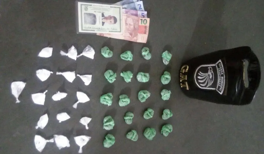 A equipe fazia patrulhamento pela Rua Juruviara Fosca, no Conjunto Monte Carlos, quando avistou o jovem em atitudes suspeitas. Ao realizar abordagem, a GM encontrou com ele 20 invólucros contendo maconha, 16 embalagens com cocaína e dinheiro trocado.