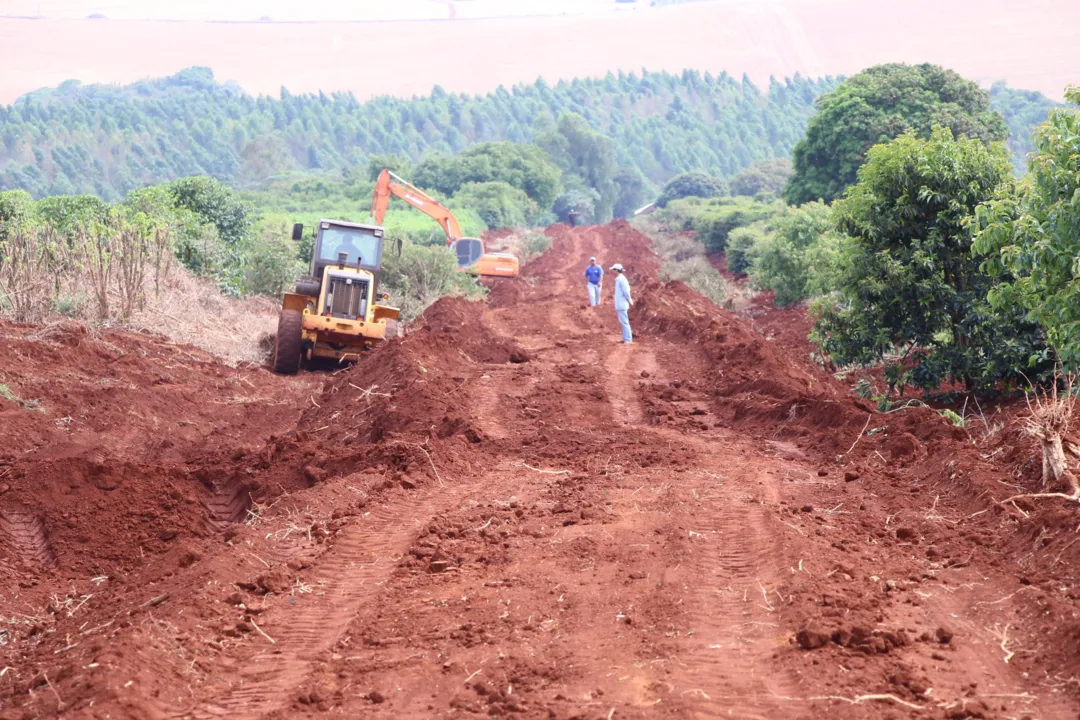 A prefeitura de Arapongas está revitalizando uma estrada rural que serve a diversos agricultores estabelecidos na região do Araguari.