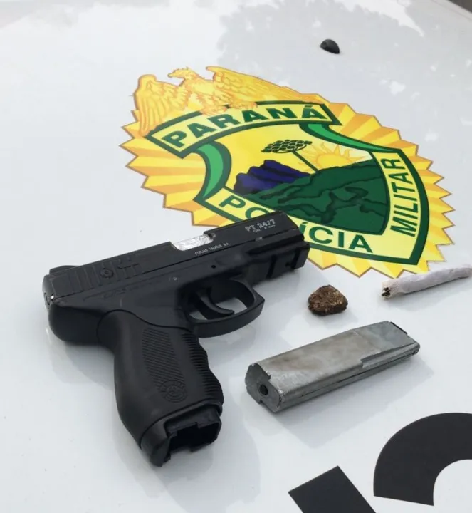 Dois jovens, de 18 anos e 17 anos, foram detidos por policiais militares, na tarde desta segunda-feira (9), em Sabáudia, com uma motocicleta furtada, maconha e simulacro de pistola.
