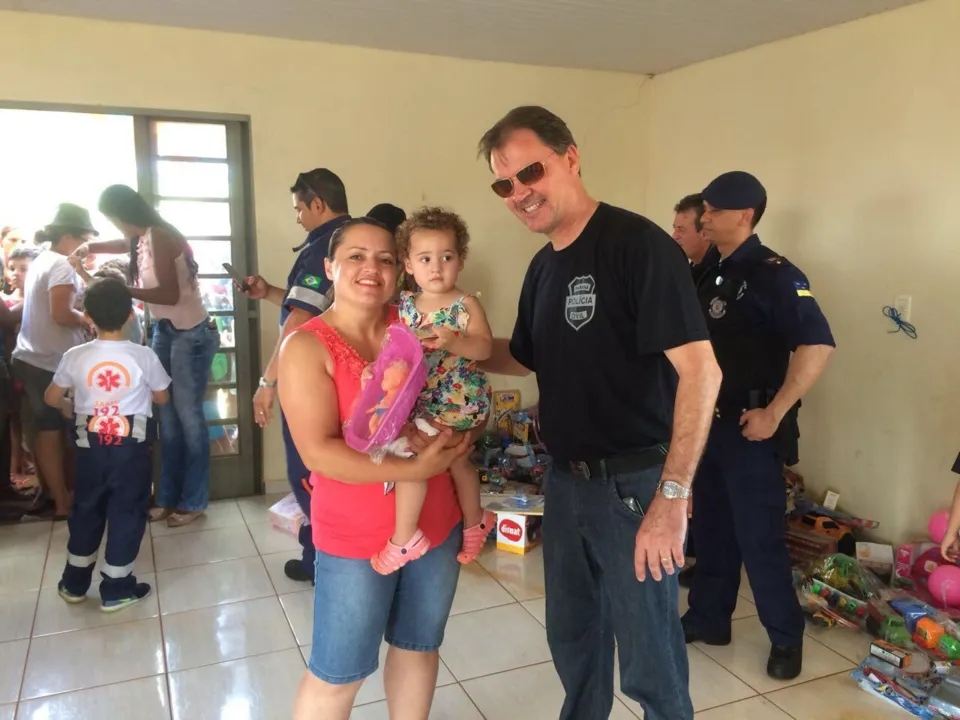 Equipes da força de segurança de Arapongas como Polícia Militar, Civil, Corpo de Bombeiros e Guarda Municipal, juntamente com o Serviço de Atendimento Móvel de Urgência (Samu) realizaram na tarde de domingo (15) a entrega de brinquedos às crianças carentes da região do Conjunto Habitacional Piacenza. O evento aconteceu no salão comunitário onde foram distribuídos ainda cachorro-quente e refrigerante em comemoração ao Dia das Crianças.