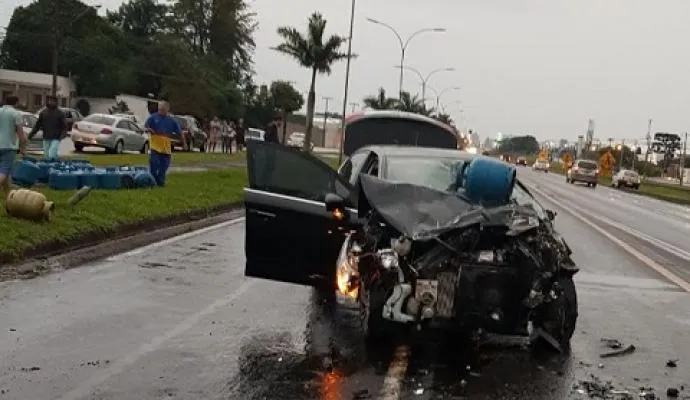 A Polícia Rodoviária Federal (PRF) disse que chovia no momento do acidente. Não houve vazamento de gás.
