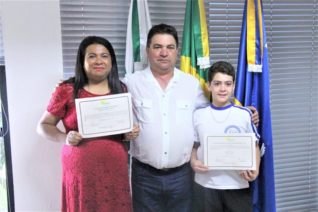 Recentemente o Prefeito Sergio Onofre recebeu a visita da professora Catia Jacinto Duarte, acompanhada do aluno Rafael Ulian Damasceno, do Colégio Estadual Francisco Ferreira Bastos.Ambos participaram do 16º Concurso Brasileiro de Haicai Infanto Juvenil, ofertado pelo Grêmio Haicai Ipê, de São Paulo.