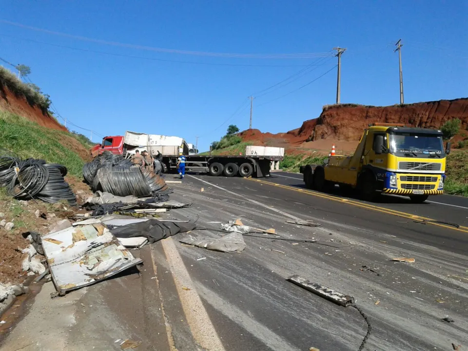 O caminhão desgovernado atingiu o pedestre que estava na beira da pista e depois bateu contra o barranco. O veículo estava carregado com bobinas de ferro e a carga ficou espalhada pela rodovia.