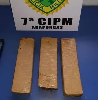 Policiais da Rádio Patrulha e Canil, juntamente com a equipe de motos da Guarda Municipal de Arapongas, prenderam o suspeito em uma residência do bairro, onde foram apreendidos três aparelhos celulares. Na sequência, as equipes deslocaram até uma chácara de propriedade do preso, onde nas buscas foram localizados três tabletes de maconha, com peso total de 1,170 quilogramas. Um homem que estava na chácara foi preso.